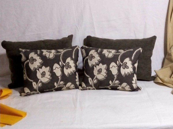 Pack foto 1 : dos almohadones estampados con tapa base lisa medidas 40 x 30 aprox + 2 almohadones lisos en color chocolate medidas 50 x 35 aprox.
